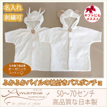 名入れ可 出産祝いにもおすすめ ふかふかパイルの袖付きバスポンチョ アモローサマンマ うさぎ くま 男の子 女の子 お風呂あがりのバスローブ タオルとしても!新生児赤ちゃんの出産祝い 御祝 ギフトにもおすすめ Amorosamamma