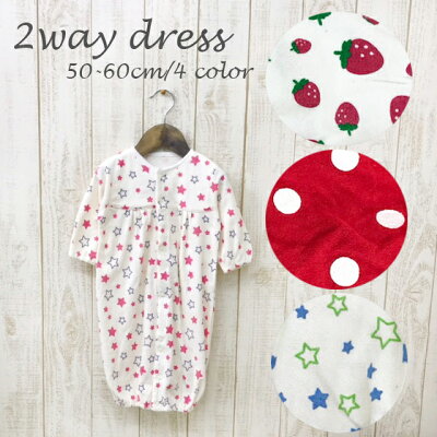 メール便OK! 春物夏物 ベビードレス&カバーオール(ツーウェイオール) パイル地 スムース 赤ちゃんのベビー服 50〜60cm ドレカバ/男の子/女の子/ベビー/出産祝い/プチプラ/