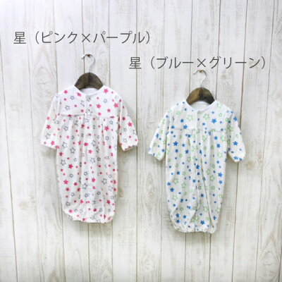 ●カラー柄:4色展開 ●サイズ:50〜60cm、新生児期〜 ●素材:綿80%ポリエステル20% ●生産:中国