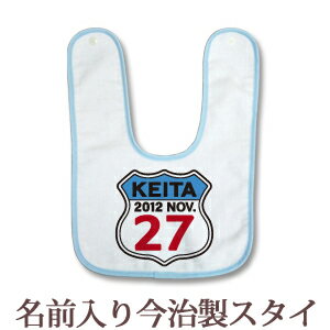 出産祝い 名入れ スタイ 赤ちゃんに優しい今治タオル生地 日本製 名前入り よだれかけ ビブ 名入れ無料 ワッペン風デザイン ROUTE66(ルート66) 男の子 女の子 ベビー 新生児 通常6-7営業日お届け 百日祝い 【メール便対応】 【ココロコ】