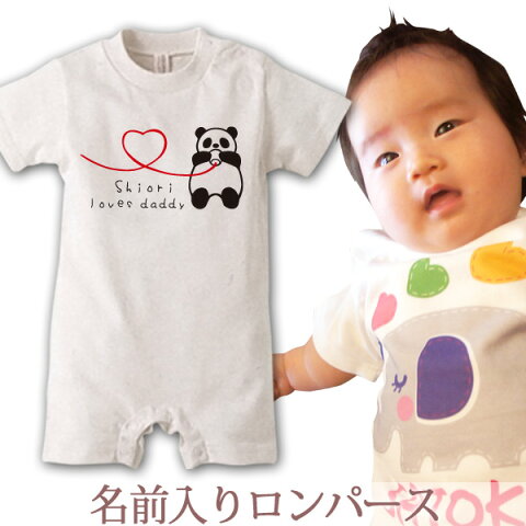 出産祝い 名入れ ロンパース ボディスーツ 糸電話パンダの親子 男の子 女の子 赤ちゃん 新生児 ベビー 服 カバーオール 80 半袖 名前入り 名入れ無料 百日祝い 【メール便対応】 【ココロコ】
